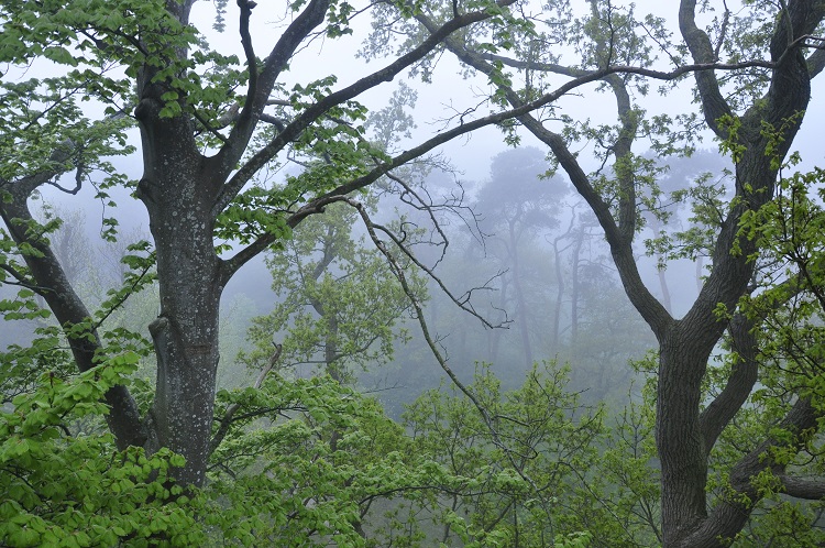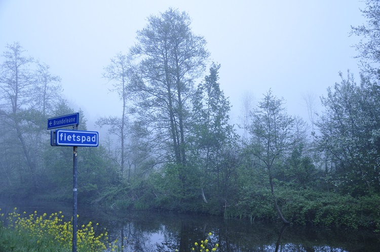 In de vroege ochtend van 6 mei, zo rond zonsopkomst, maakte ik op een vijftal locaties in het SLOK-gebied een geluidsopnamen, van ieder ca. twee minuten lang, van de ter plaatse aanwezige zingende vogels. Een gevarieerd geheel met bepaalde, soms specifieke, soorten afhankelijk van de plek. Op iedere locatie werd tevens een foto gemaakt. Op de foto’s is te zien dat er een bijzondere sfeer hing, vanwege de dichte mist. Ook op de uitkijktoren aan de Bieruma Oostingweg werd een aantal foto’s gemaakt. Hoewel het zicht slechts zeer beperkt was, was de zang van de vogels er niet minder om! Per locatie volgt hieronder een opsomming van de vogelsoorten die te horen zijn op de betreffende geluidsopname.